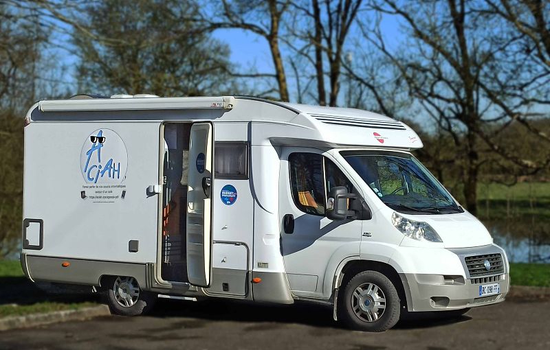Elle pratique l'aller vers, notamment avec son camping-car aménagé en salle informatique itinérante.